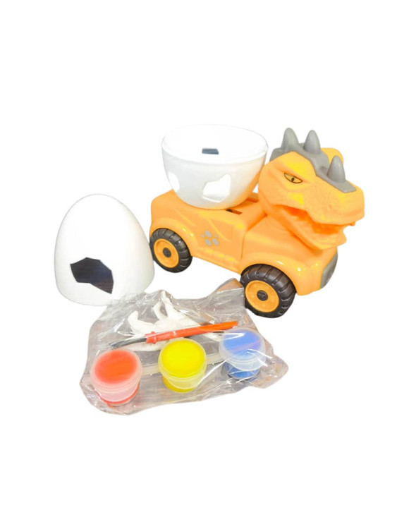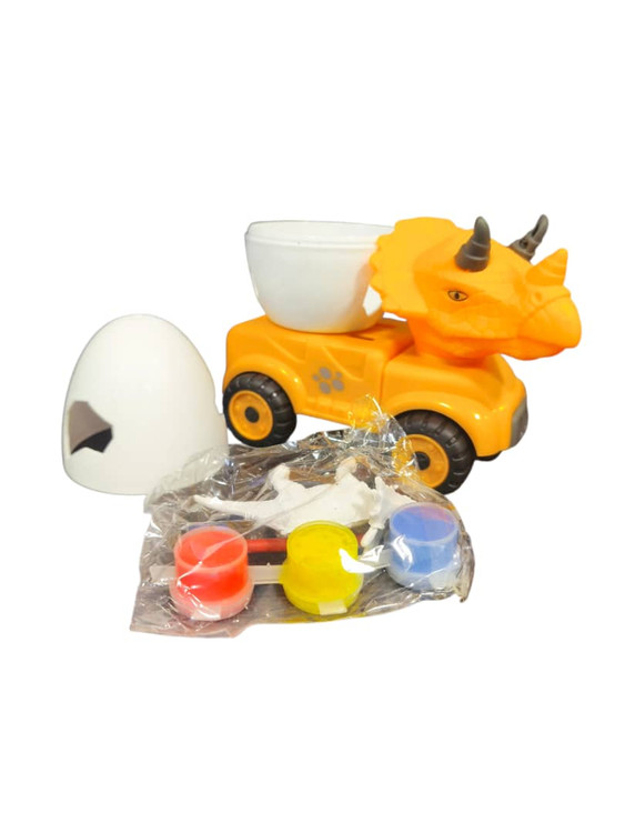این مجموعه یک اسباببازی خلاقانه و سرگرمکننده است که ترکیب ماشینهای کوچک با تخمهای دایناسور را ارائه میدهد. هر ماشین به شکل دایناسور طراحی شده و یک تخم سفید روی آن قرار دارد. جذابیت اصلی این محصول در این است که همراه با هر ماشین و تخم، یک ست رنگآمیزی شامل رنگهای کوچک و قلممو وجود دارد تا کودک بتواند تخم دایناسور را به سلیقه خودش رنگ کند.
