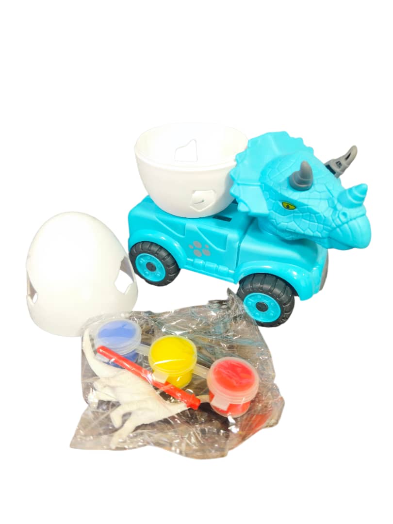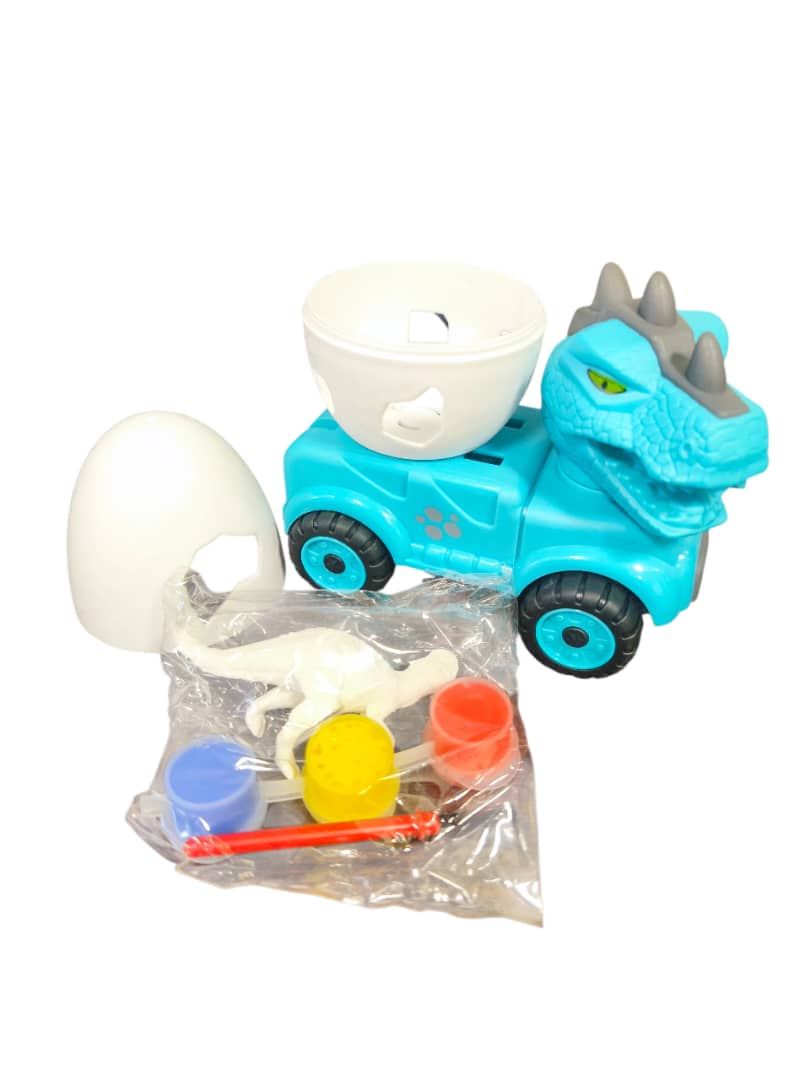 این مجموعه یک اسباببازی خلاقانه و سرگرمکننده است که ترکیب ماشینهای کوچک با تخمهای دایناسور را ارائه میدهد. هر ماشین به شکل دایناسور طراحی شده و یک تخم سفید روی آن قرار دارد. جذابیت اصلی این محصول در این است که همراه با هر ماشین و تخم، یک ست رنگآمیزی شامل رنگهای کوچک و قلممو وجود دارد تا کودک بتواند تخم دایناسور را به سلیقه خودش رنگ کند.