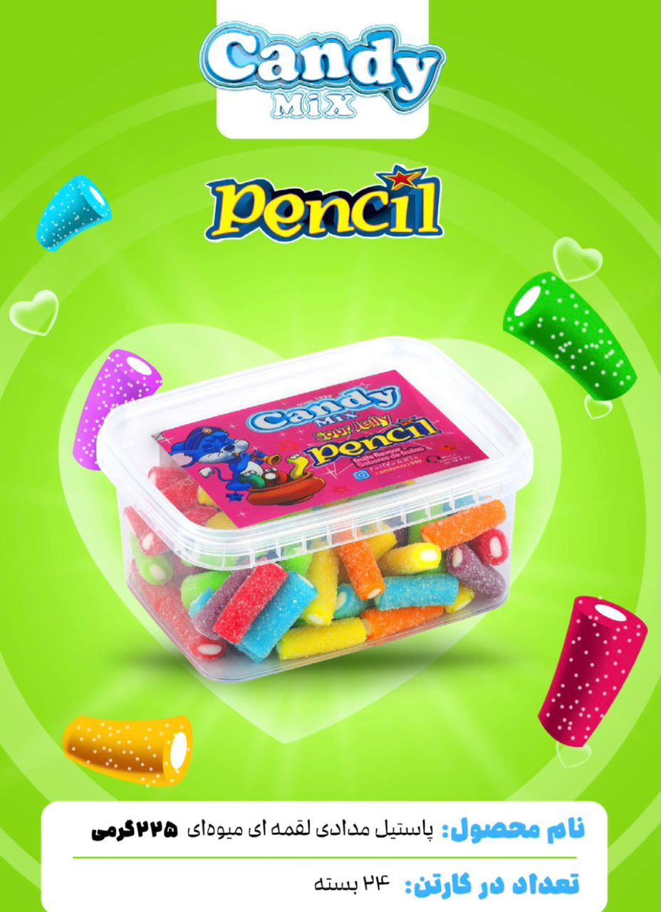 با خرید پاستیل مدادی لقمهای میوهای ۲۲۵ گرمی کندی میکس، طعم شیرین و طبیعی میوهها را در هر لقمه احساس کنید.